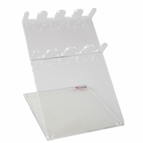 Pipettor Holder, 12 H x 8 W x 8" D, Clear, Acrylic, 26.1 mm Upper Rack, 16 mm Lower Rack, 4 Place, For Major Brands of Pipettors, Chemically-resistant, with Non-skid Feet