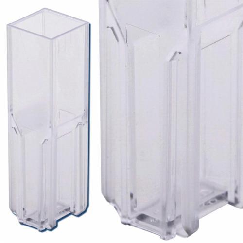 These exceptionally fine quality polystyrene cuvette are designed for assays throughout the 340 to 750 nm visible spectral range. A standard 1 cm light path and recessed windows provide maximum light transmission. Scale down your assay volumes to save on costly reagents using these specially designed cuvette that have a minimum filling volume of 1.2 ml. Injection molded from a superior grade of methacrylate designed for accuracy throughout the VIS-UV spectral range from 285 nm to 750 nm. Excellent optical qualities throughout the spectral range make these cuvette perfect for scanning small volumes, enzyme rate reactions, and standard curve determinations. Packaged 100 per covered tray, with 500 per case.