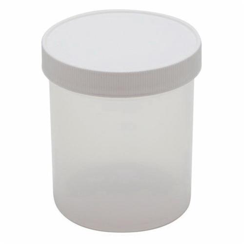 Container, 500 ml, 89 dia x 97 mm H, Natural, Polypropylene, Wide Mouth, Straight-side Style, with White Polypropylene Linerless Closure, Autoclavable, For Storage of Lab Specimens, Supplies or Powders