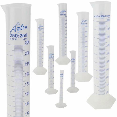 These plastic graduated cylinders feature either permanently molded or printed crisp blue graduations that will not fade after repeated autoclaving. Meets stringent international quality criteria according to ISO 6706 standards. Tolerances according to DIN 12 680 TT, Class B. Maximum temperature: PP 121°C.