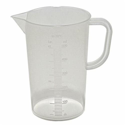 Beaker, 500 ml, 93 dia x 140 mm H, Transparent, Polypropylene, 10 ml Increment, Tall Form with Handle, Autoclavable