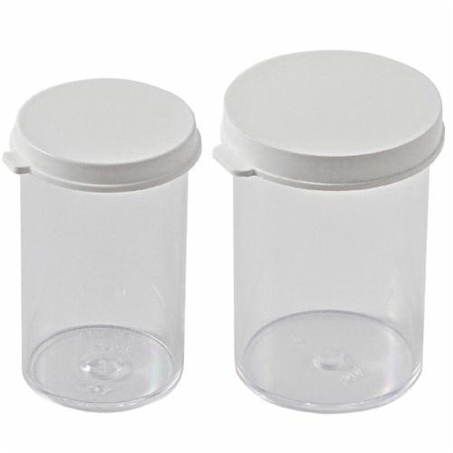 Snap Cap molded of rigid-wall styrene containers with tight fitting polyethylene snap-on caps. Excellent for storing dry materials, powders, tablets, etc. Approximately 16 drams per ounce. 7 dram size may be used with automatic cell counters for collection of sample and, where venous samples are used, for dilution purposes. Maximum temperature polystyrene is 70°C.