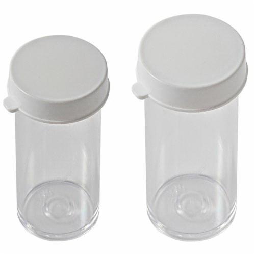 Container, 17 ml, 27 ID x 82 mm H, Clear, Polystyrene, with White Snap Cap, Molded of Rigid-wall Styrene Containers with Tight Fitting Polyethylene Snap-on Caps