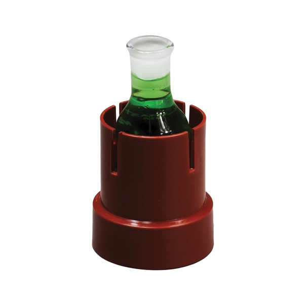 Holder, Polypropylene Plastic, For 25 ml Round Bottom Flask, Autoclavable, 22.8 mm L Slot, 4.9 Top x 4.2 mm Bottom Slot, Durable and Easy to Clean, Side Slots Can be Used as Sight Windows, Wide Base Keeps Flasks Stable