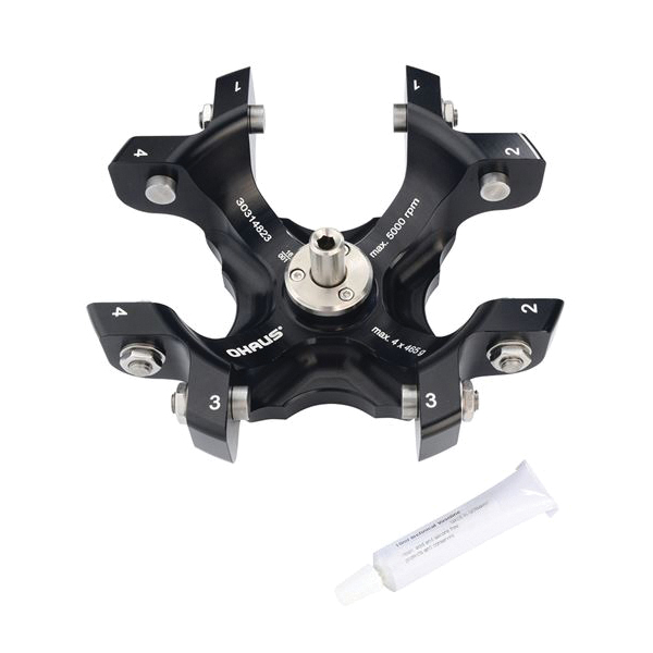 Rotor, 4 x 100 ml, 296 mm, Aluminum/Polypropylene, R-S4x100/5MIS Model, 5000 rpm Maximum Speed, 3885 x g Maximum RCF, Sealable, 148 mm Outer/Inner Radius, Swing Out Rotor Style, 0 to 90° Angle, 1860 g Maximum Loading Weight