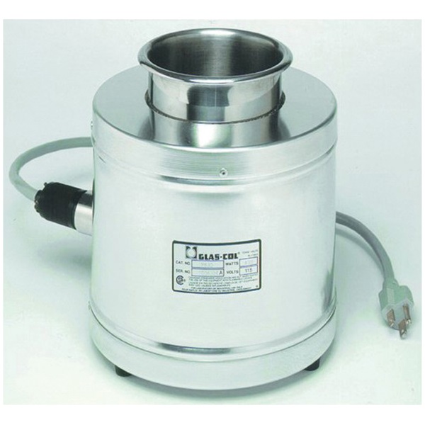This mantle can accommodate and efficiently heat all types of straight walled metal beakers by preventing contact of heating elements and vessel walls with inner layers of glass fabric. Also available for glass beakers with resilient and pliable interior glass fabric which cradles fragile beakers. Heat is concentrated at the bottom of these mantles so even small liquid volumes may be heated.