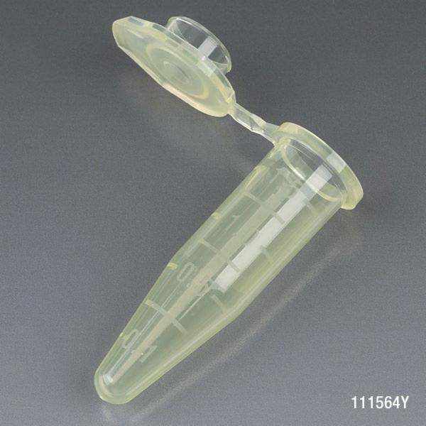 Microcentrifuge Tube, 1.5 ml, Yellow, Polypropylene, 20000 RCF Spin Rate, Autoclavable, Marking Spot, Precise Graduation, -80 to 121°C Temperature Range, With Attached Cap