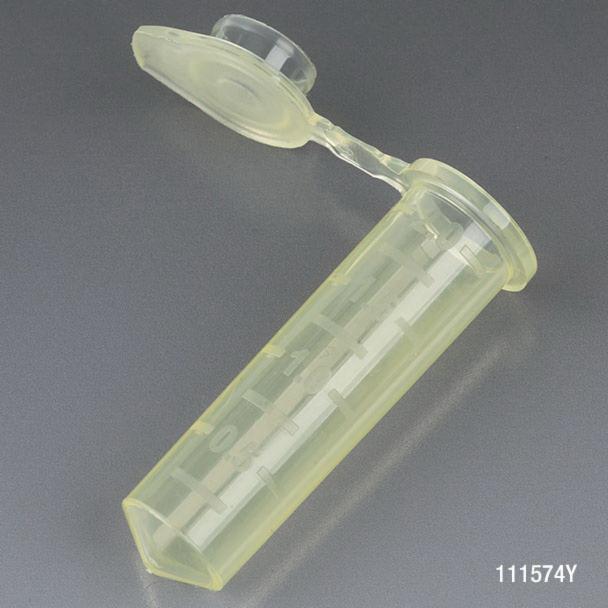 Microcentrifuge Tube, 2 ml, Yellow, Polypropylene, 20000 RCF Spin Rate, Autoclavable, Marking Spot, Precise Graduation, -80 to 121°C Temperature Range, With Attached Cap