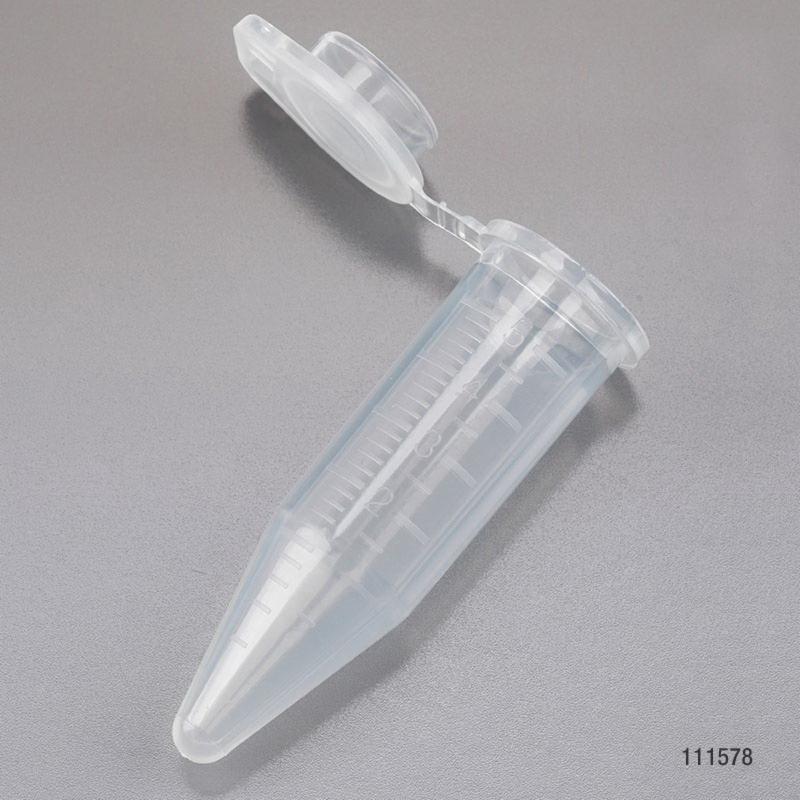 Macrocentrifuge Tube, 5 ml, Natural, Polypropylene, Non-sterile, 0.2 ml and 0.5 ml Graduation Increments, -86 to 80°C Temperature Range, With Attached Cap