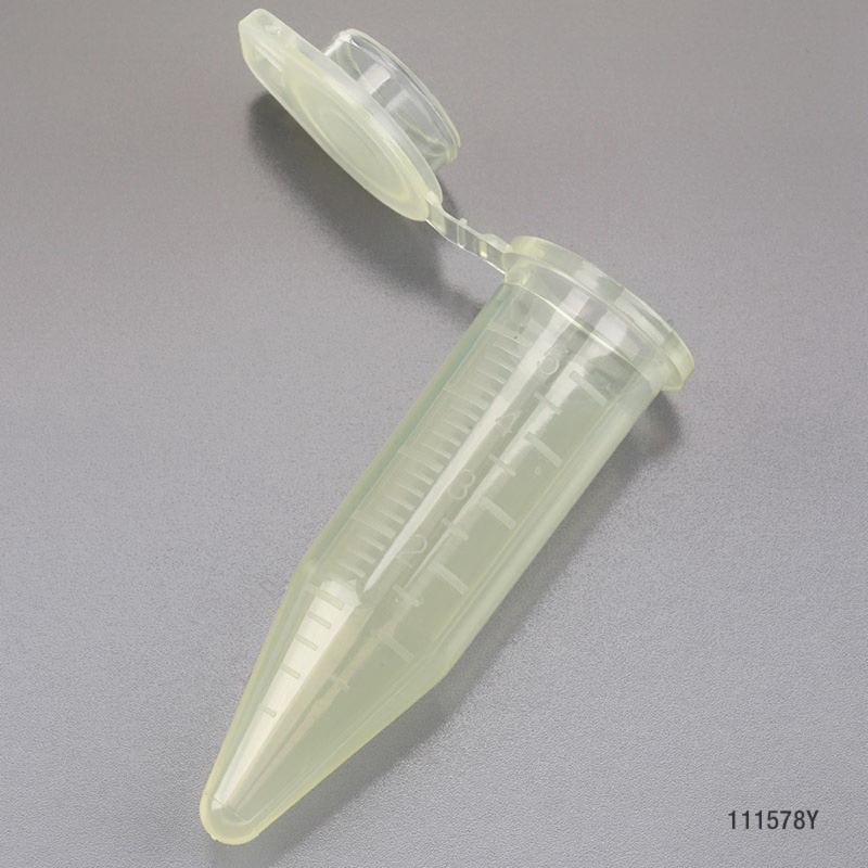 Macrocentrifuge Tube, 5 ml, Yellow, Polypropylene, Non-sterile, 0.2 ml and 0.5 ml Graduation Increments, -86 to 80°C Temperature Range, With Attached Cap