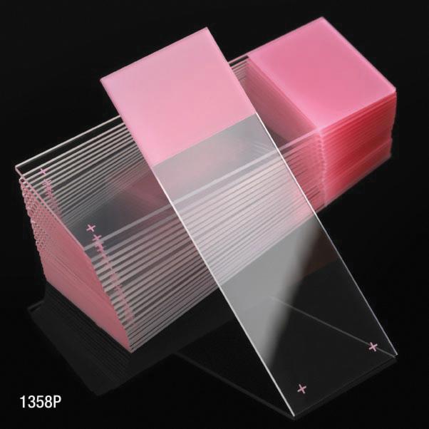 Microscope Slide, 25 x 75 mm, Pink, Diamond White Glass, 1 to 1.2 mm Thickness, 90° Ground Edges, Positive Charged, Frosted, Adhesive Surface, For Cell and Tissue Adhesion