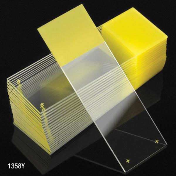 Microscope Slide, 25 x 75 mm, Yellow, Diamond White Glass, 1 to 1.2 mm Thickness, 90° Ground Edges, Positive Charged, Frosted, Adhesive Surface, For Cell and Tissue Adhesion