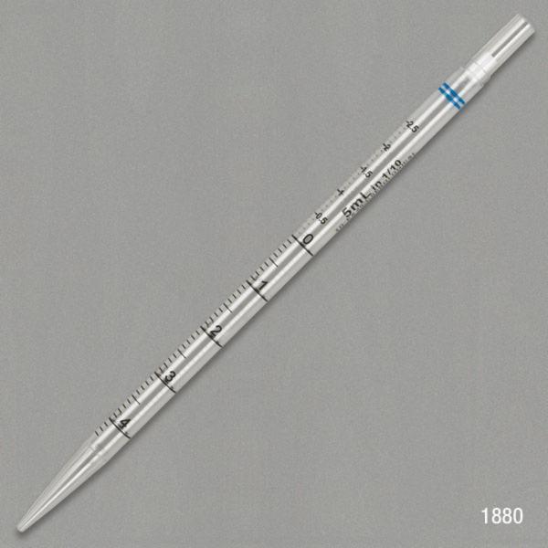 Serological Pipette, 5 ml, 230 mm L, Polystyrene, ±2% Accuracy, Hydrophilic PET Plug, Blue Striped, Sterile, Calibrated to Deliver, Individually Wrapped, Short, Non-cytotoxic, Non-pyrogenic, Color Coded