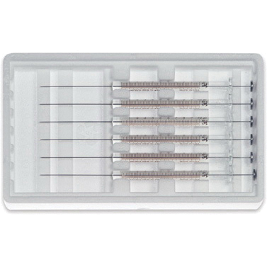 Microliter syringes are used with liquid only. They feature a stainless steel plunger which is individually fitted to the glass barrel. The result is a liquid tight seal with nearly frictionless movement. These syringes are ideal for organic samples that are not prone to precipitation, crystallization, or bonding with glass. Plungers and barrels are not interchangeable or replaceable. The 700 series syringe is the original hand-fitted Hamilton® syringe. The stainless steel plunger is manufactured to fit the glass barrel with a tolerance less than three thousandths of a millimeter, resulting in unsurpassed syringe life. This series of syringes is ideal for dispensing volumes from 0.5 µl up to 500 µl. A variety of different terminations and needle options are available.