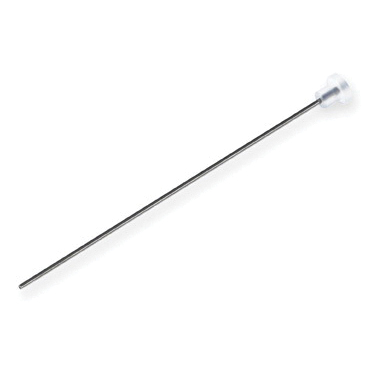 Hat type needles are designed to be connected directly to a flat bottom valve port. Use the needle bushing part number 35056 to connect the needle directly to any 0.25" to 28 Hamilton® valve. Hat needles are sold in three-packs.