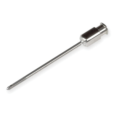 Luer Lock Needle, 51 mm L, 1.8 ID x 2.11 mm OD, 304 Stainless Steel, 14 ga, Conical with Side Port 5 Point Style, Nickel Plated Brass Standard Metal Hub, Autoclavable, For Headspace, Prone to Needle Clogging, Causes Minimal Septum Damage