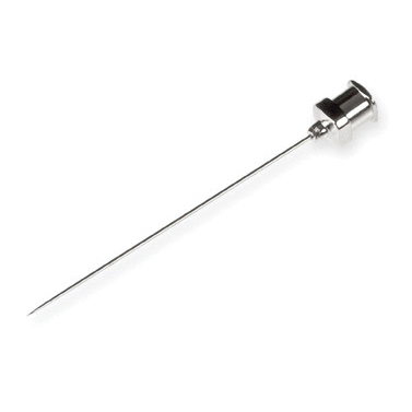 Luer Lock Needle, 51 mm L, 0.15 ID x 0.71 mm OD, 304 Stainless Steel, 22s ga, Sharp, Bevel, Curved, Non-coring 2 Point Style, Nickel Plated Brass Standard Metal Hub, Autoclavable, For Gas Chromatography (GC), Septum Piercing