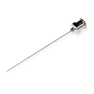 Luer Lock Needle, 51 mm L, 0.15 ID x 0.51 mm OD, 304 Stainless Steel, 25s ga, Sharp, Bevel, Curved, Non-coring 2 Point Style, Nickel Plated Brass Standard Metal Hub, Autoclavable, For Gas Chromatography (GC), Septum Piercing