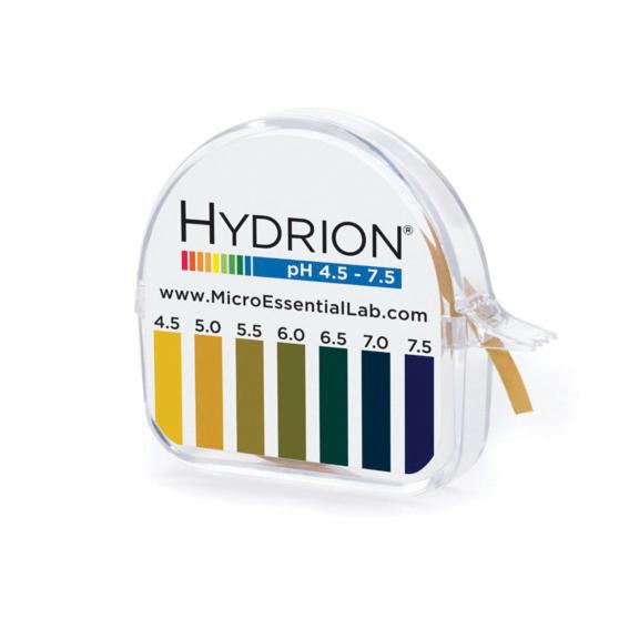 This short-range Hydrion pH Paper is excellent for measuring pH solutions around neutral pH 7.00 and offers clear bright single color matches at every .5 interval from pH 4.5-7.5. The color chart has pH matches at [4.5][5.0][5.5][6.0][6.5][7.0][7.5].