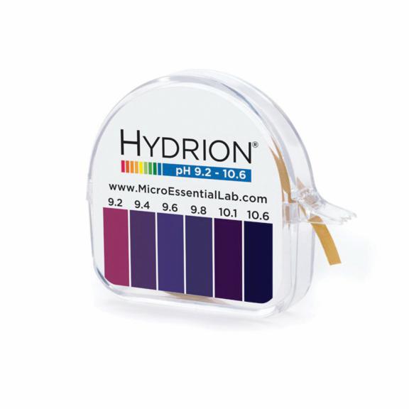 pH Test Paper Dispenser, 9.2 to 10.6 pH, 15' L, Single-Roll, 9.2, 9.6, 10, 10.4, 10.6 pH Graduation