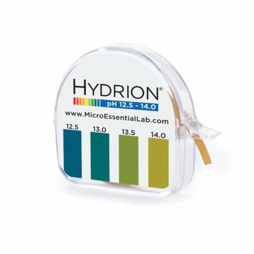 This short-range Hydrion pH Paper provides excellent color separation in the alkaline range and offers clear bright single color matches at every .5 interval from pH 12.5-14.0. The color chart has pH matches at [12.5][13.0][13.5][14.0].