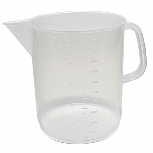 Beaker, 5000 ml, 190 dia x 225 mm H, Transparent, Polypropylene, 250 ml Increment, Low Form, Suitable for Foodstuff, Molded Graduations - in Liters