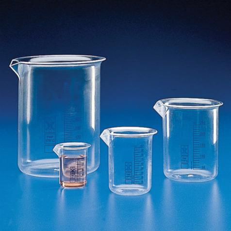 Beaker, 250 ml, 95 H x 71 mm dia, Crystal Clear, Polymethylpentene, 1.7 mm Wall Thickness, Griffin Style, 50 to 250 ml Graduation Range, 10 ml Graduation Intervals, Blue Printed Graduation, Autoclavable, Reusable, Shatter-resistant