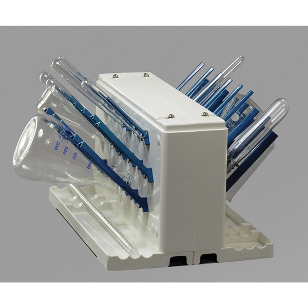 Drying Rack, 14.75 L x 10 W x 8.4" H Footprint, ABS Plastic, 38 Pegs, Double-sided, 1 Tier, Benchtop, Drip/storage Trays Have Scalloped Wells to Hold Long Thin Labware, Practical Solution for Drying and Storing Fragile