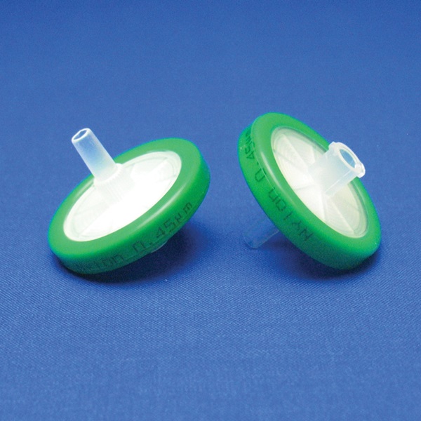 Syringe Filter, 0.45 µm Pore Size, 31.9 dia x 25.7 mm, 25 mm dia Membrane, Nylon, Dark Green Polypropylene Housing, 650 kPa Maximum Pressure, 3.55 cm2 Filtration Area, Autoclavable, Non-sterile, Luer-Lock and Luer-Slip Connector