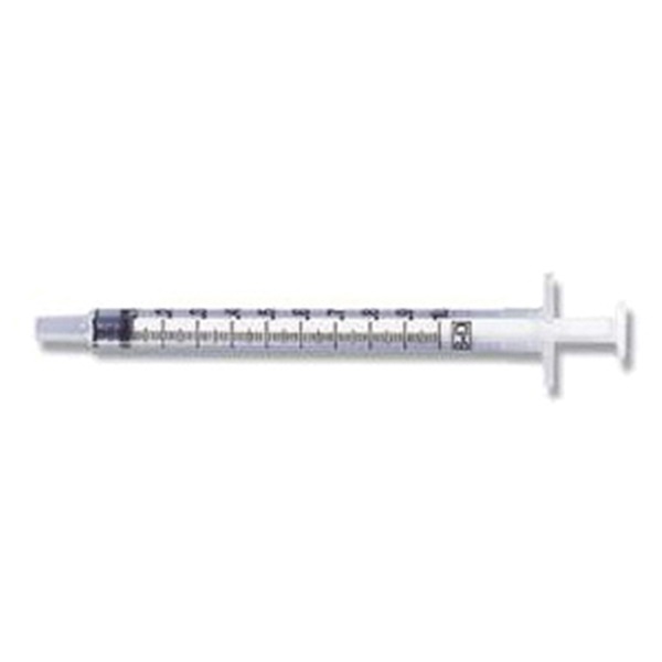Tuberculin Syringe, 1 ml, Translucent Barrel, Black Markings, Translucent Plunger, Plastic, Luer Slip Tip, Flat Top Style, 0.01 ml Graduation, Sterile, Disposable, Single Use Only, Concentric Tip Orientation