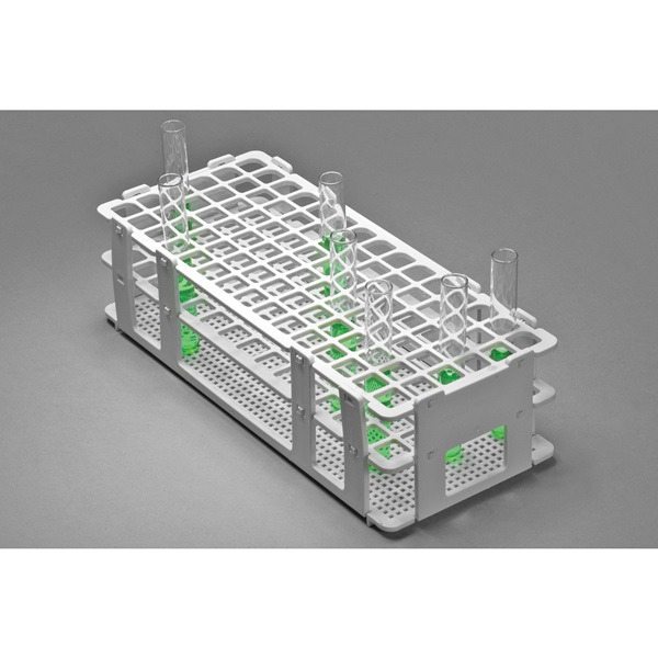 Rack, 24.6 L x 10.4 W x 6.4 cm H, White, Polypropylene, Rectangle, 90 Places, 6 x 15 Rows, 6.35 cm H Top Deck, For Use With 10 to 13 mm Tube, Autoclavable, Submersible, Stackable, Perfect For Use Outside The Water Bath