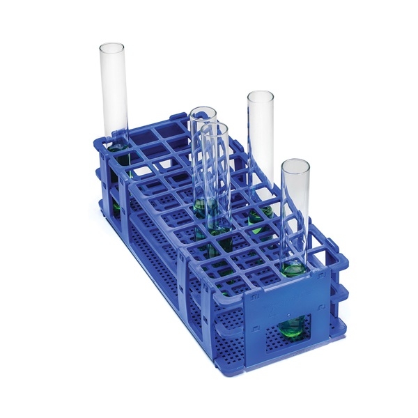Rack, 24.6 L x 10.4 W x 6.4 cm H, Blue, Polypropylene, Rectangle, 40 Places, 4 x 10 Rows, 6.35 cm H Top Deck, For Use With 16 to 20 mm Tube, Autoclavable, Submersible, Stackable, Perfect For Use Outside The Water Bath