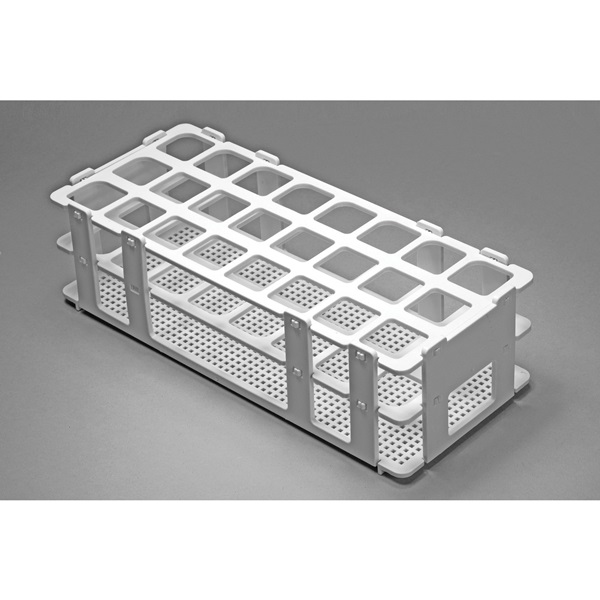 Rack, 24.6 L x 10.4 W x 6.4 cm H, White, Polypropylene, Rectangle, 24 Places, 3 x 8 Rows, 6.35 cm H Top Deck, For Use With 20 to 25 mm Tube, Autoclavable, Submersible, Stackable, Perfect For Use Outside The Water Bath