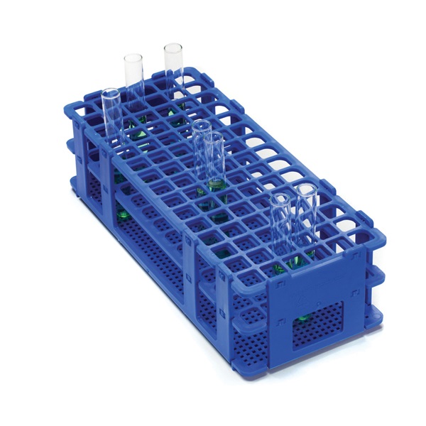 Rack, 24.6 L x 10.4 W x 6.4 cm H, Blue, Polypropylene, Rectangle, 90 Places, 6 x 15 Rows, 6.35 cm H Top Deck, For Use With 10 to 13 mm Tube, Autoclavable, Submersible, Stackable, Perfect For Use Outside The Water Bath