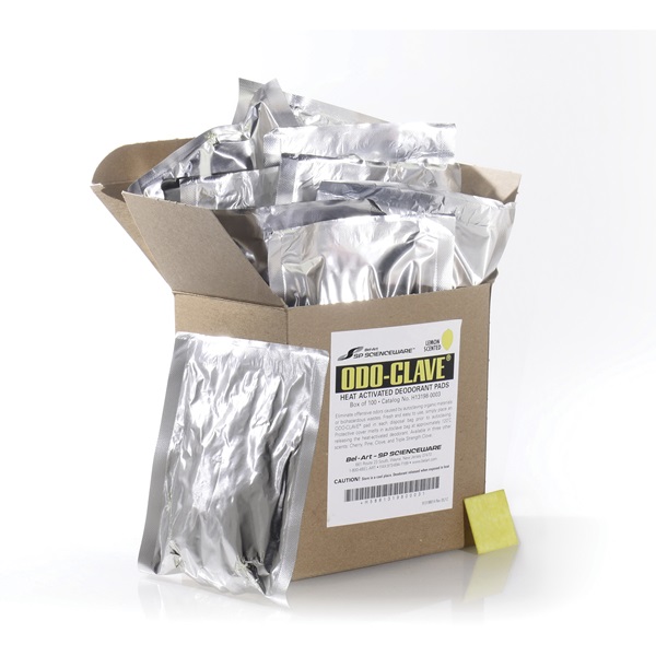 Heat-released deodorant pads neutralize autoclave odors with one of four pleasant scents.
