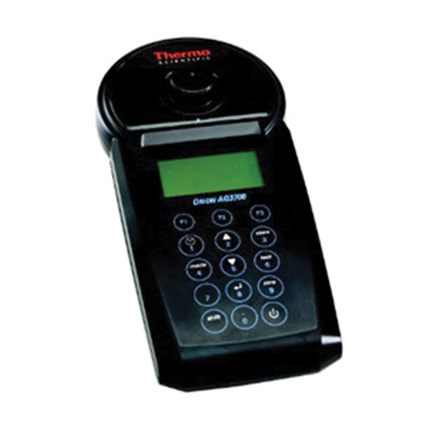 Select the Thermo Scientific™ Orion™ Aquafast AQ3700 colorimeter to manage your water and wastewater analysis using over 90 preprogrammed methods for common test parameters with automatic selection of 6 LED wavelengths and countdown timer. Methods include total nitrogen and total phosphate nutrient testing or create up to 10 custom methods using 2-14 standards and blank. This IP-67 waterproof meter records 1000 data points, offers a long battery life of about 26 hours continuous use or 3500 tests and multilanguage user interface in English, French, German, Italian, Polish, Portuguese and Spanish.
