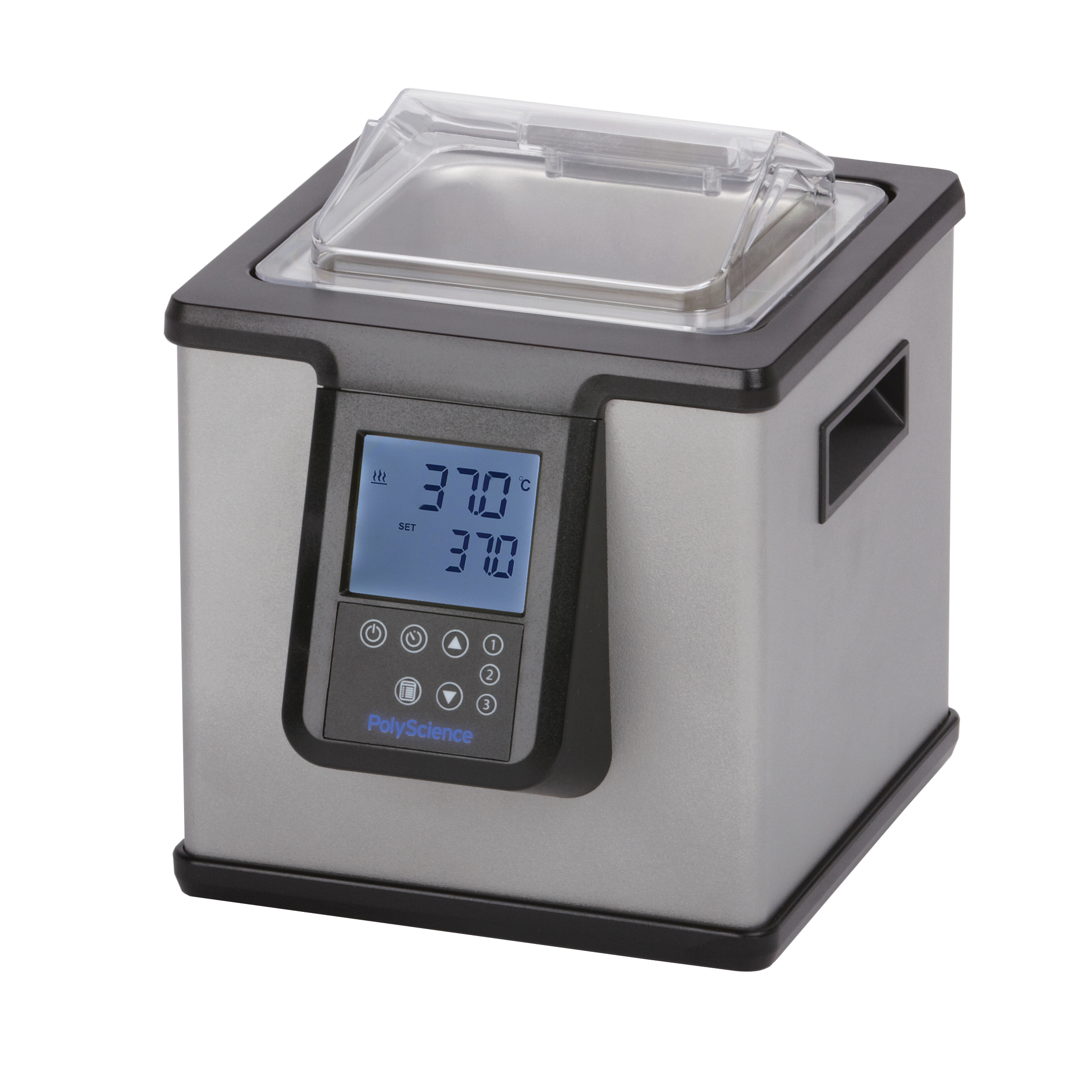 Water Bath, 2 L, 12 L x 9 W x 13.5" H, Stainless Steel Tank, General Purpose, Ambient 5 to 100°C Working Temperature Range, 240 VAC, 50 Hz, 0.5 A, 1 Phase, 3.9 L x 4.3 W x 6" D Working Access, ±0.1°C Temperature Stability