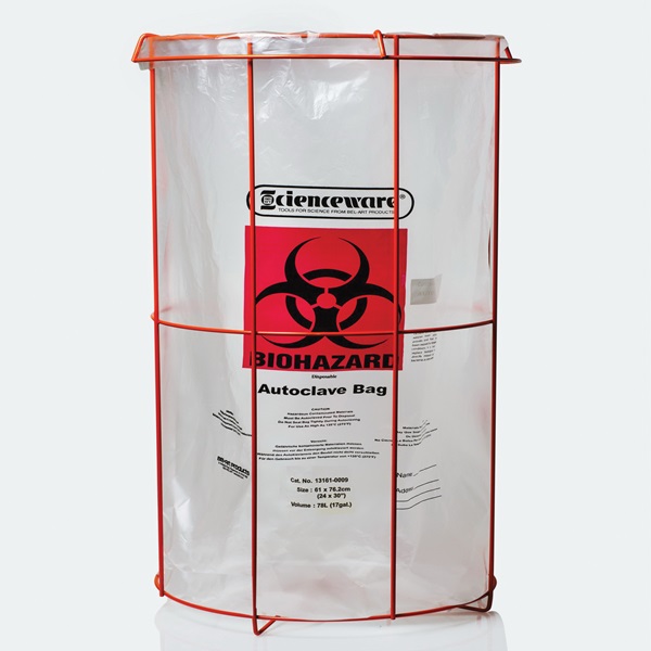 Bag Holder, 37 dia x 60 cm H, Orange, Epoxy-Coated Steel Wire, Fits the Bag Size 61 x 76 cm