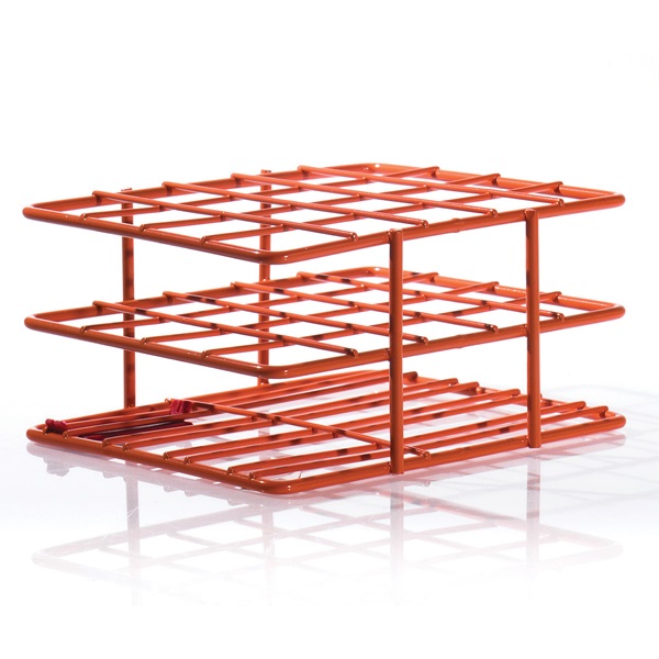 Rack, 12.5 L x 10.8 W x 6.4 cm H, Orange, Epoxy Coated Steel Wire, Rectangle, 20 Places, 5 x 4 Rows, 6.35 cm H Top Deck, For Use With 16 to 20 mm Tube, -223 to 121°C Temperature Range, Autoclavable, Non-sterile