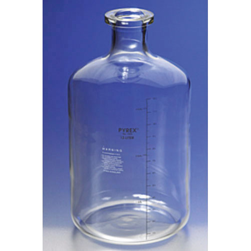 Solution Carboy, 19 L, 133 OD x 485 mm H, Borosilicate Glass, Cylindrical Bottle Shape, 282 mm H With Stopper, 248 mm H Without Stopper, 45 mm OD Neck, 500 ml Graduation Interval, Non-sterile, Reusable