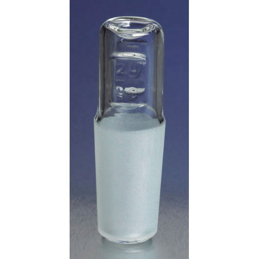 Taper Joint and Reagent Bottle Stopper, 29/35 Standard Taper Joint, 71 mm H, 41 mm H Above Standard Taper Grind, Hollow Glass, Closed Bottom, Light Weight, Barrel-shaped Head, Grooves in the Sides Help Prevent Slippage