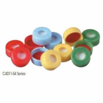 Closure, 11 mm, Green, Aluminum, White/Red Septa, Silicone/PTFE Septa, Snap Cap, 1.3 mm Thickness, 6 mm Hole Size, For 12 x 32 Vials, with Prefitted Septa