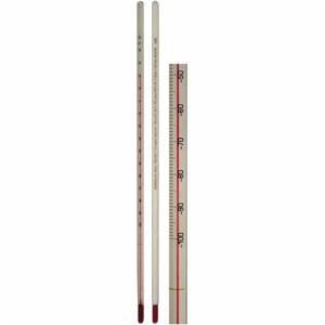 SAMA Precision Thermometer, Red Spirit Filled, 305 mm L, -10 to 200°C, Liquid-in-glass, 1°C Divisions, Partial Immersion, 76 mm Immersion Length, Individually Serialized, For Laboratory