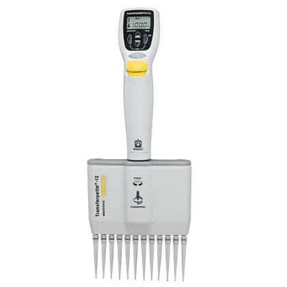 The brand Transferpette® electronic single and multi-channel pipettes combine the innovation of the Transferpette® with the convenience and automation of motorized, electronic pipettes. The result is an accurate, ergonomic instrument for use in most laboratory applications. Both single and multi-channel models are available in five volume ranges, and feature an autoclavable pipette shaft or manifold, respectively.