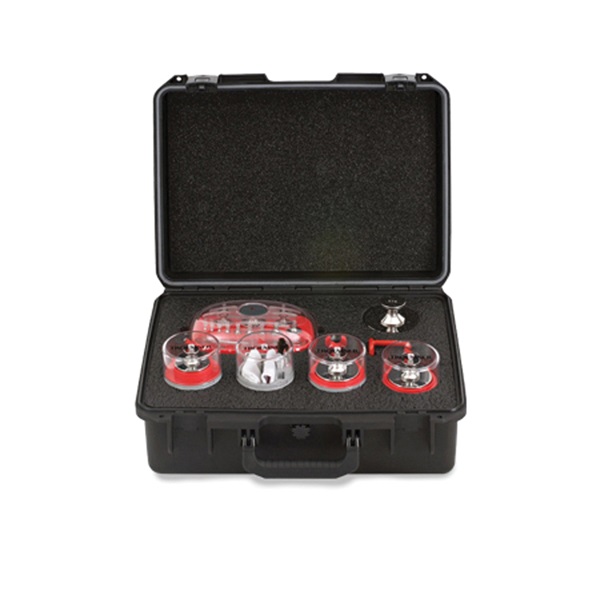 Inside a heavy-duty resin case, there is a compartment holding a polycarbonate case containing weights 500 g and below. 1 kg and 2 kg weights are held in their individual polycarbonate weight cases inside a cut out. For weights 5 kg and larger, a compartment for each weight exists within the resin case. Weights 25 kg and larger are supplied in an individual heavy-duty resin case. There are also compartments for lifters and forceps supplied with each set. Weight sets where the largest weight is 10 kg and above are supplied with a Complete Accessory kit which includes a microfibre cloth, nylon glove, small and wide brushes, and forceps.