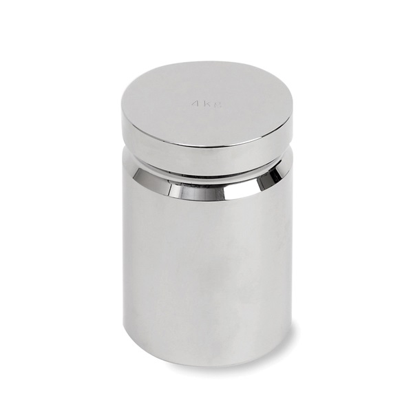 Electronic Balance Weight, 4 kg, 2.98 x 4.54", 303 Stainless Steel, Class 1, Cylindrical with Groove, 80 mg Tolerance, 7.85 g/cm3 at 20°C Density, Two-piece Construction, with Traceable Certificate, Used as Reference Standard