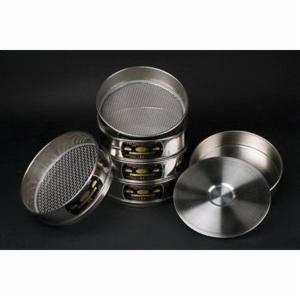 Test Sieves, 8" dia, 2.62 H x 2" D, Stainless Frame, Stainless Wire, Full Height, US Number 14, 1.4 mm Sieve Opening Size, 1.5 mm Opening Dimension, 0.71 mm Nominal Wire Diameter, 1.5 mm Maximum Individual Opening, ±0.05 mm Permissible Variation in Openings