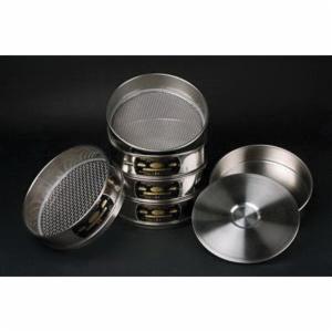 Test Sieves, 8" dia, 1.62" H x 1" D, Brass Frame, Stainless Wire, Half Height, US Number 325, 45 µm Sieve Opening Size, 57 µm Opening Dimension, 0.03 mm Nominal Wire Diameter, 66 µm Maximum Individual Opening, ±3 µm Permissible Variation in Openings