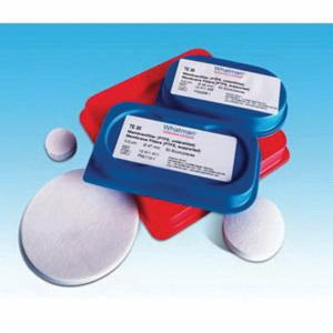 Membrane Filter, 1 µm Pore Size, 47 mm dia, Polytetrafluoroethylene (PTFE), Circle, WTP Range Membrane Type, Hydrophobic, 72% Maximum Porosity, 445 ml/min/cm2 Liquid Flow Rate at 10 psi Vacuum, 120°C Maximum Operating Temperature