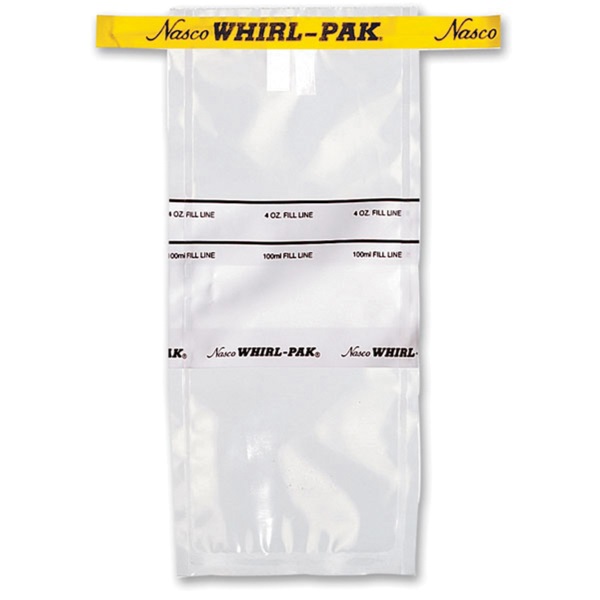 Write-on Whirl-Pak® bags make sample identification easy! Designed with a white Write-on strip that can be written on with an ordinary ballpoint pen or pencil. No labels to come off! Ideal for milk samples, water samples, and food samples. To assist in volume control, the top of the white strip can also be used as a fill line. (All fill lines are approximate.) 3", W x 7.25" L, 1.5" x 3" white strip.